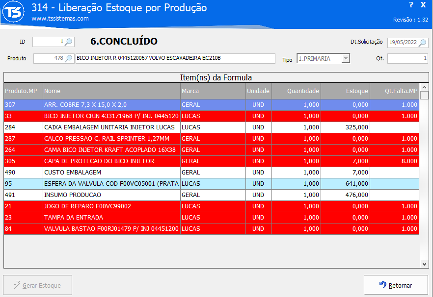 Resultados de produção claras e sincronizadas, baixe estoque de matéria prima e gere estoque do produto acabado rapidamente.